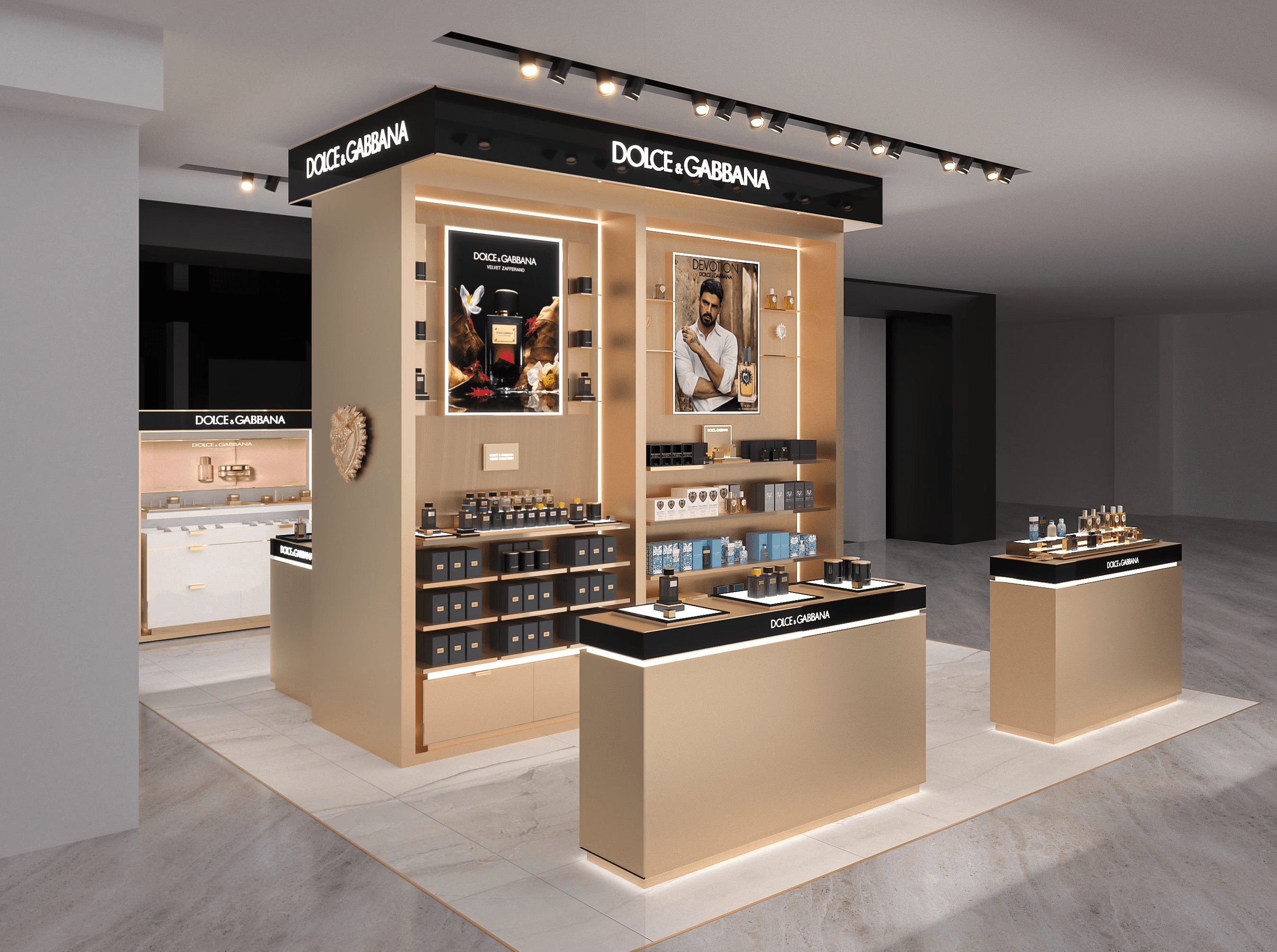 A compact display system that translates the Dolce & Gabbana Beauty identity into a clear, recognizable, and highly performant architectural language within the Rinascente Tritone context.